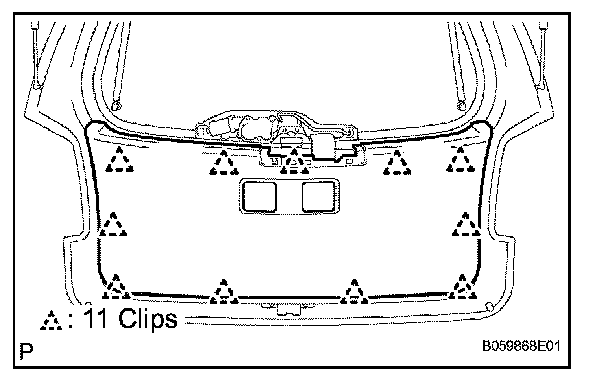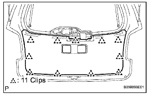 a. Engage the 11 clips and install the back door trim board assembly to the back door trim.
