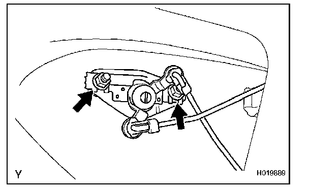 b. Remove the 2 nuts and door lock cylinder.