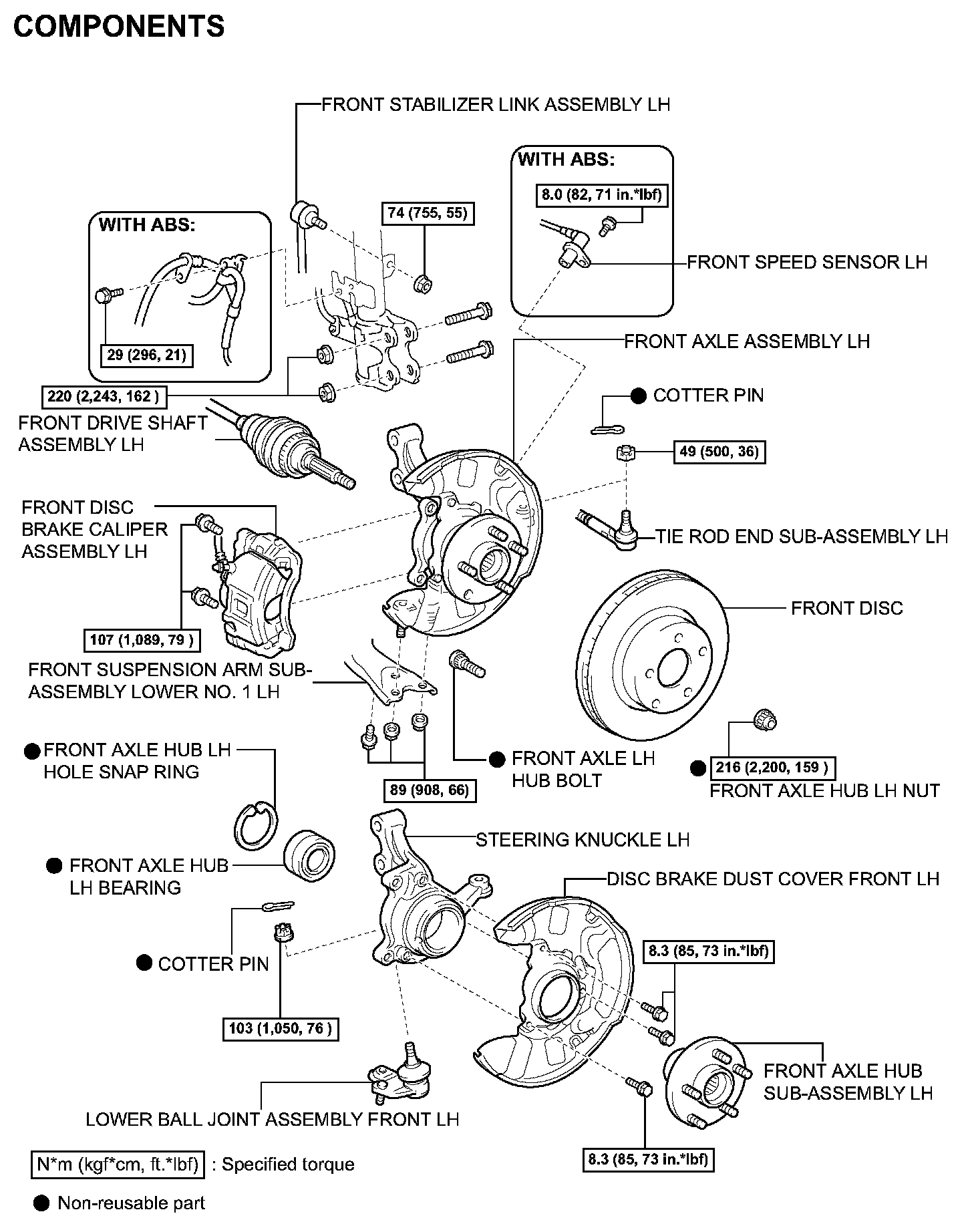 Torque: 220 Nm (2,243 kgf/cm, 162 ft. lbs.)