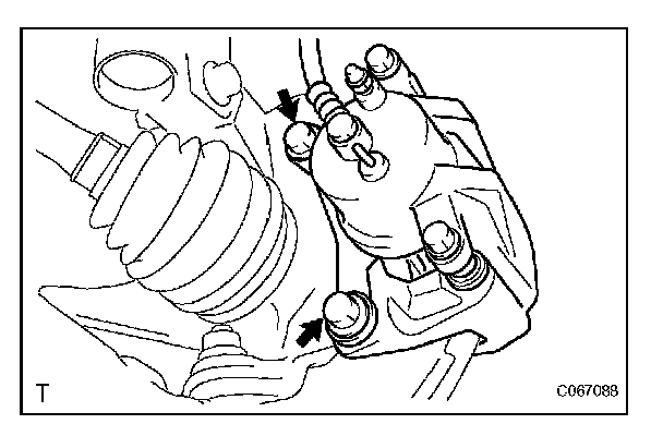 (a) Remove the 2 bolts, separate the brake caliper assembly LH from the steering knuckle.