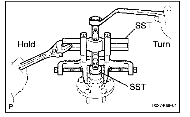 (b) Using SST, remove the inner race of hub LH bearing from the hub sub-assembly LH.