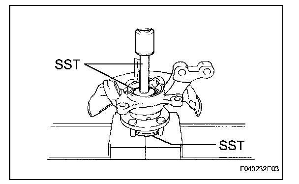 (b) Using SST and a press, remove the hub LH bearing from the steering knuckle.