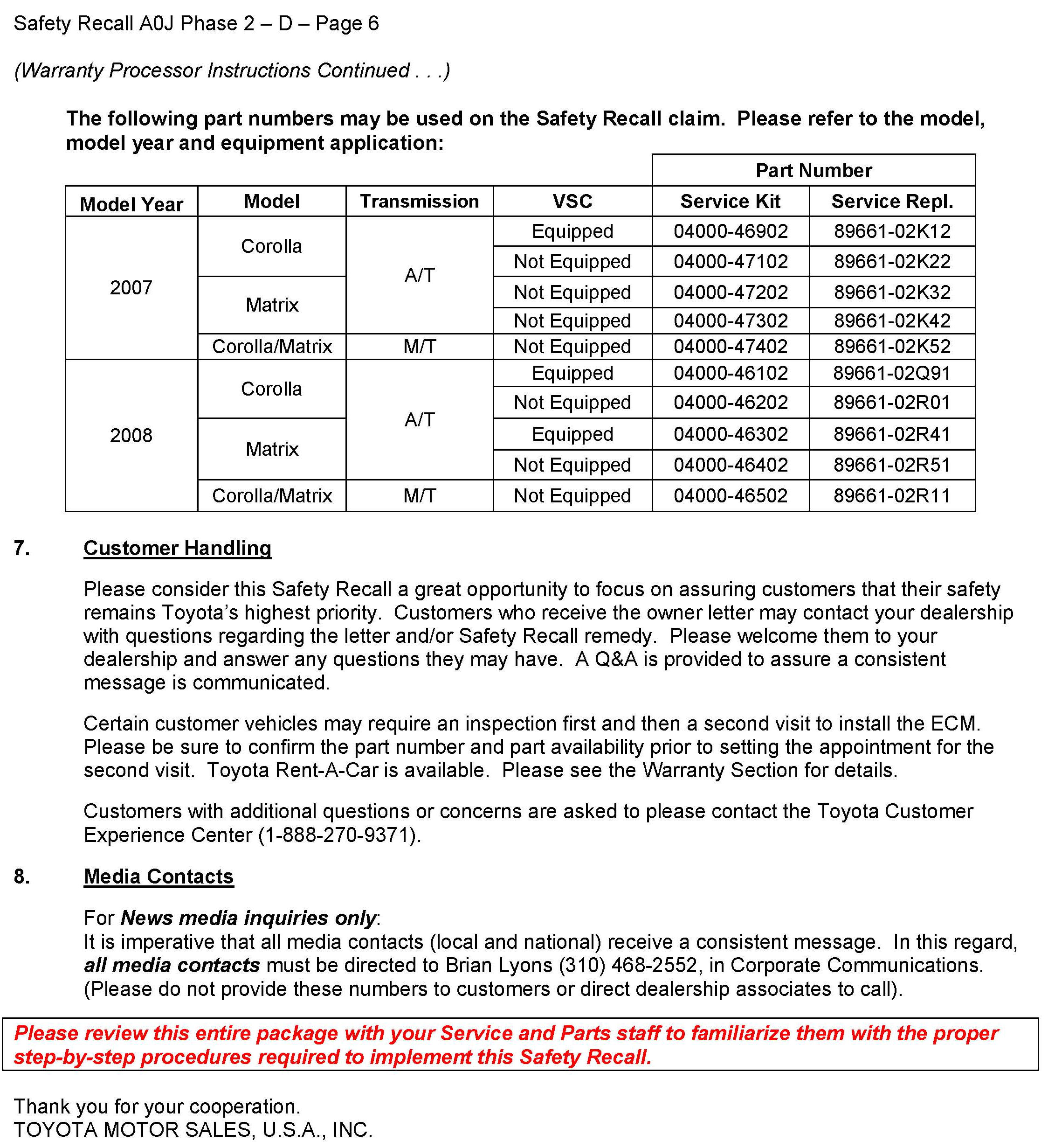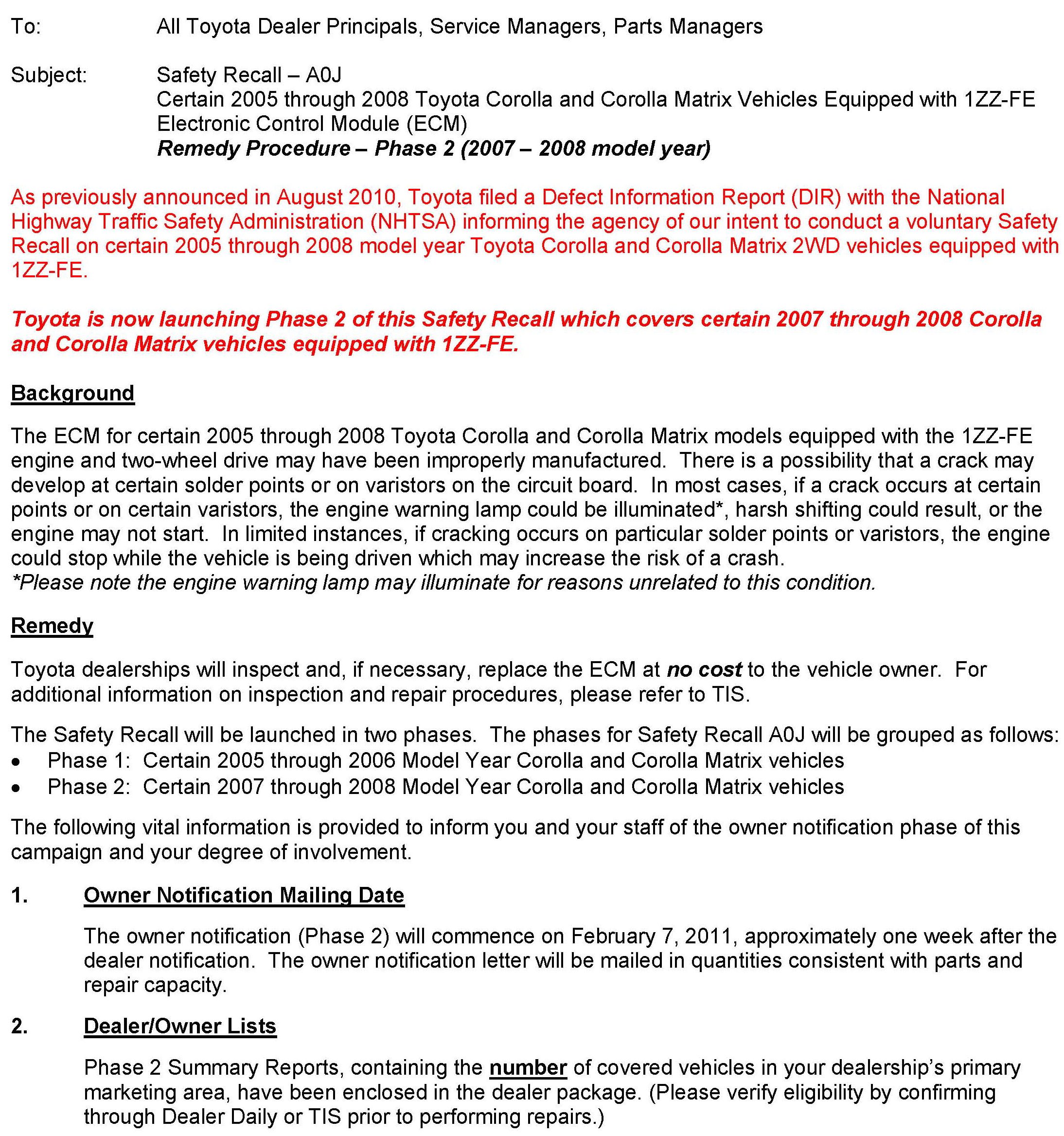 Recall - ECM Replacement