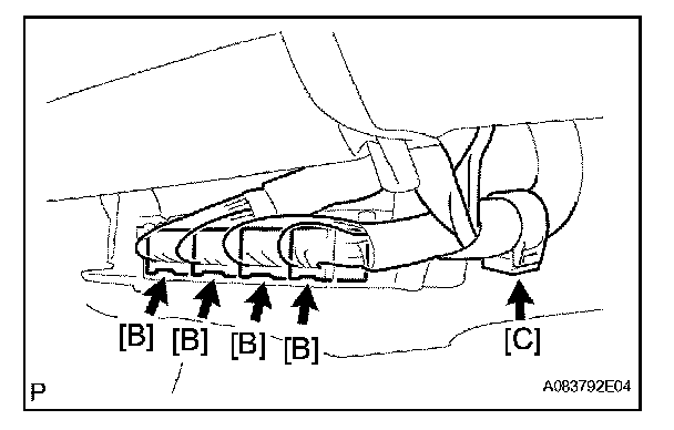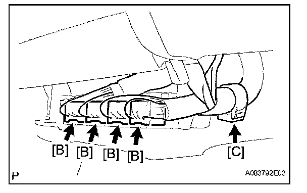 c. Install the wire harness clamp [C].