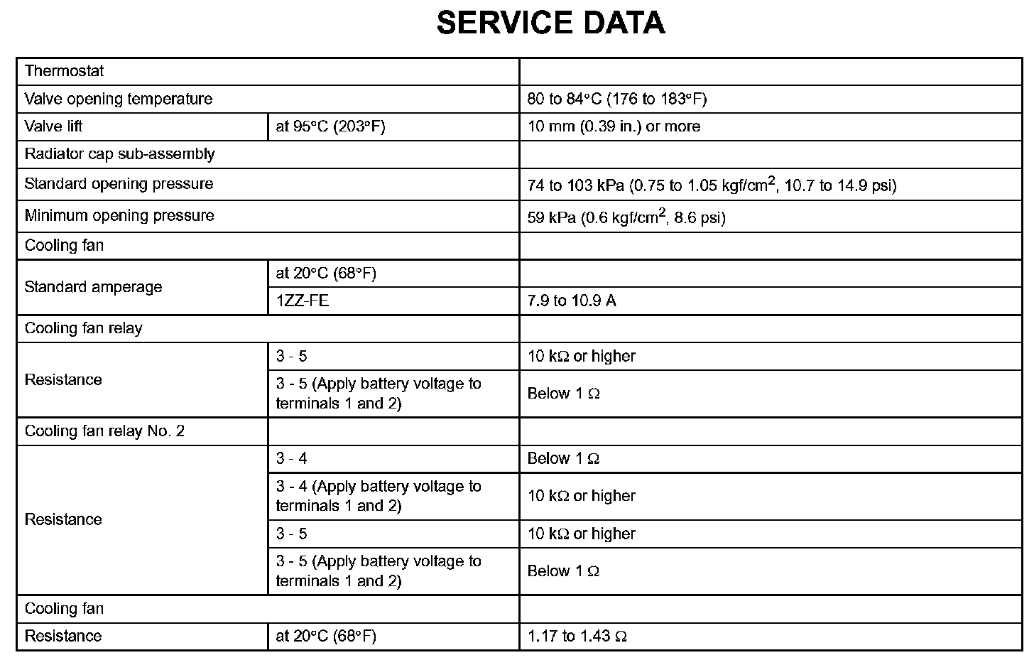 Cooling - Service Data: