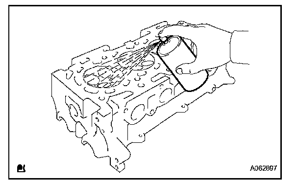 Using a dye penetrate, check the combustion chamber, intake ports, exhaust ports and cylinder block surface for cracks.