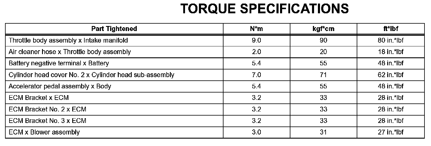 Engine Control System - Torque Specifications: