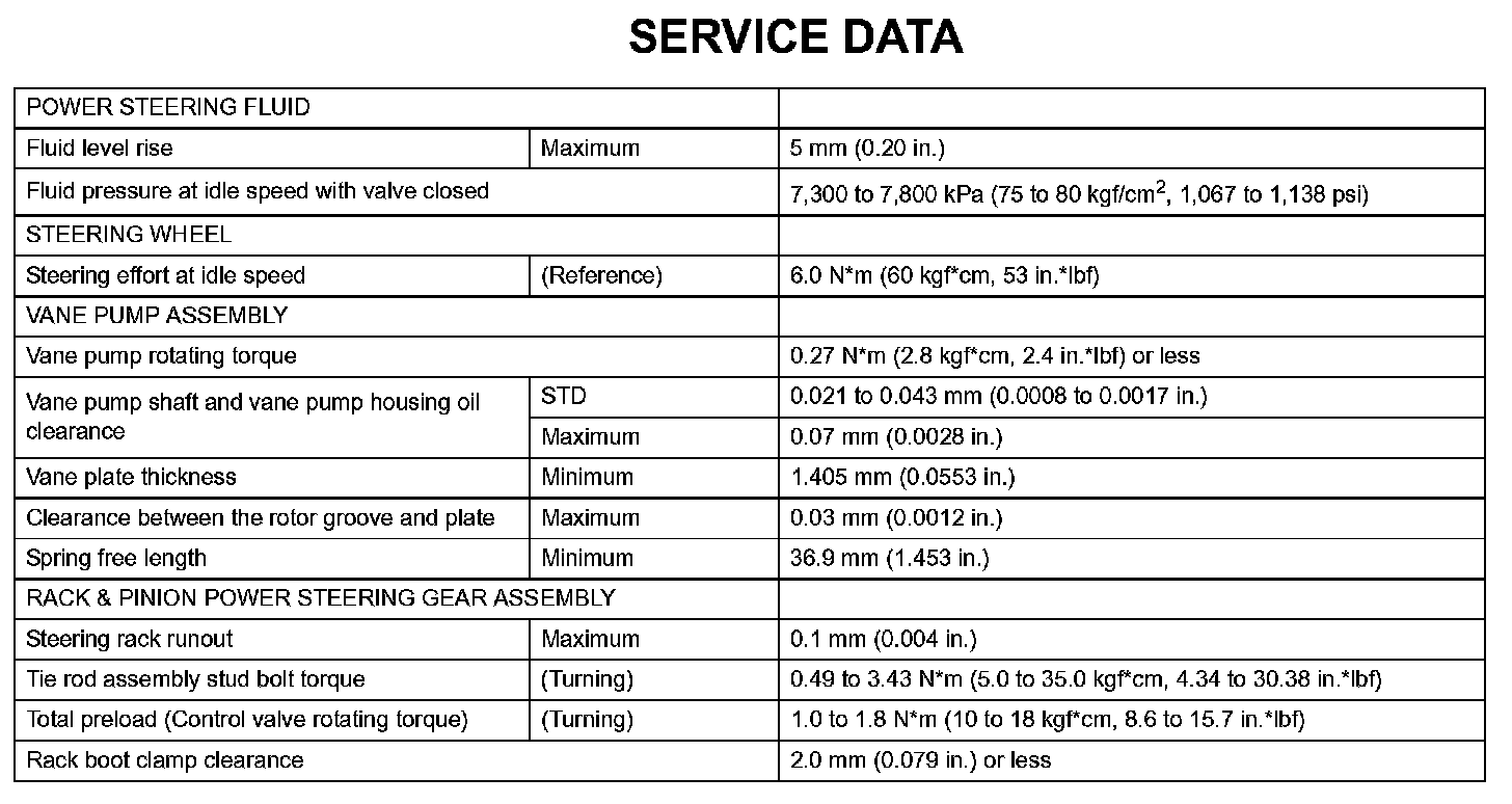 Power Steering - Service Data: