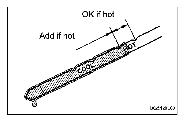 (e) Pull it out again and check that the fluid level is within the HOT range.