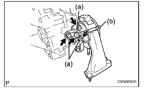 (a) Install the engine mounting bracket RR and 3 bolts to the transaxle.