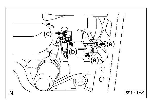 (a) Install the starter assembly and 2 bolts to the transaxle.