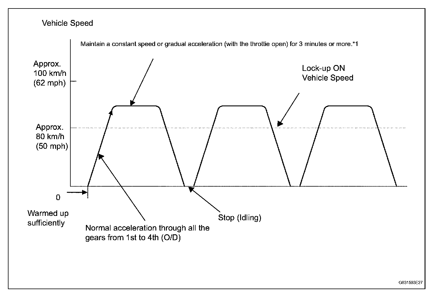 HINT: *1: Drive at such a speed in the uppermost gear, to engage lock-up. The vehicle can be driven at a speed lower than that in the above diagram under the lock-up condition.