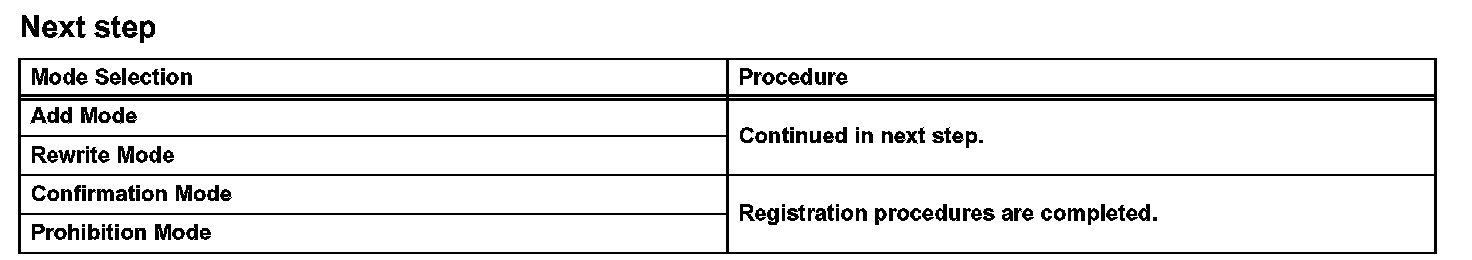 - Confirmation mode is used to confirm how many recognition codes have already been registered before another recognition code is registered.