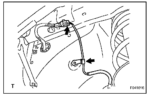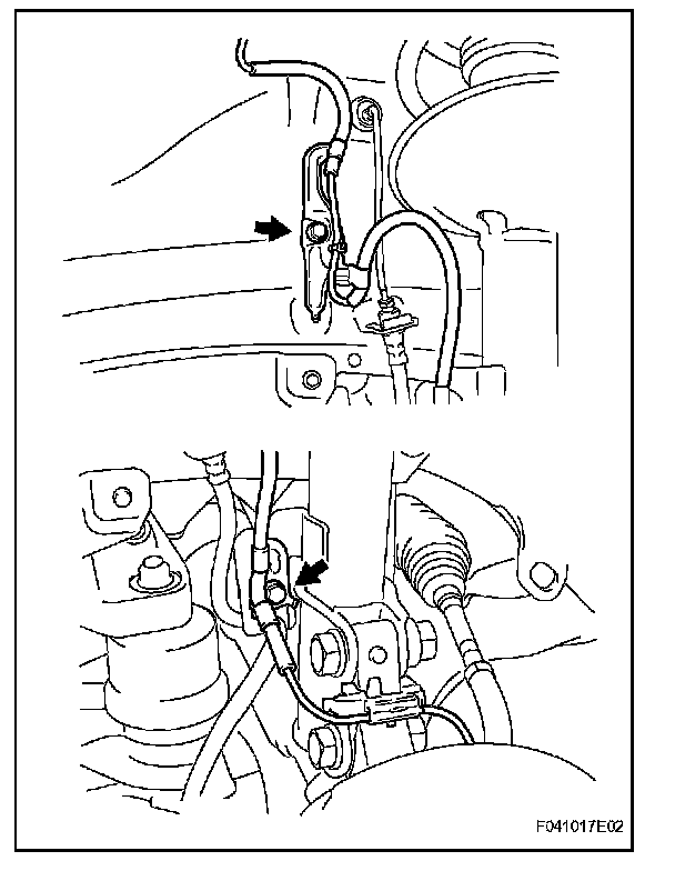b. Remove the 2 clamp bolts and disconnect the speed sensor harness from the body and shock absorber.