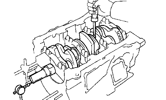 (a) Using a dial indicator, measure the thrust clearance while prying the crankshaft back and forth with a screwdriver.