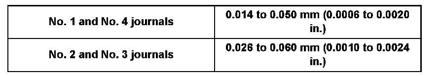 Specified oil clearance: 0.033 to 0.130 mm (0.0013 to 0.0051 inch)