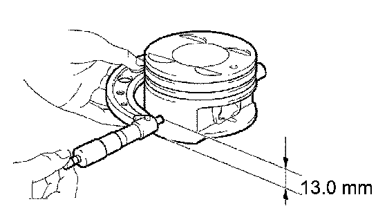 (a) Using a micrometer, measure the diameter of the piston. When you measure the diameter, attach the micrometer to a location 13.0 mm (0.512 inch) above the pistons bottom and perpendicular to the piston pin hole.