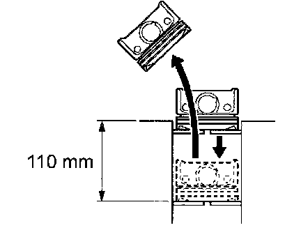 (a) Using a piston, push the piston ring a little beyond the bottom of the ring travel, 110 mm (4.33 inch) from the top of the cylinder block.