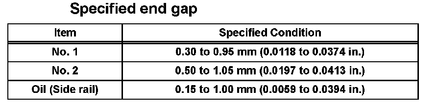 If the end gap is greater than the maximum, replace the piston ring.