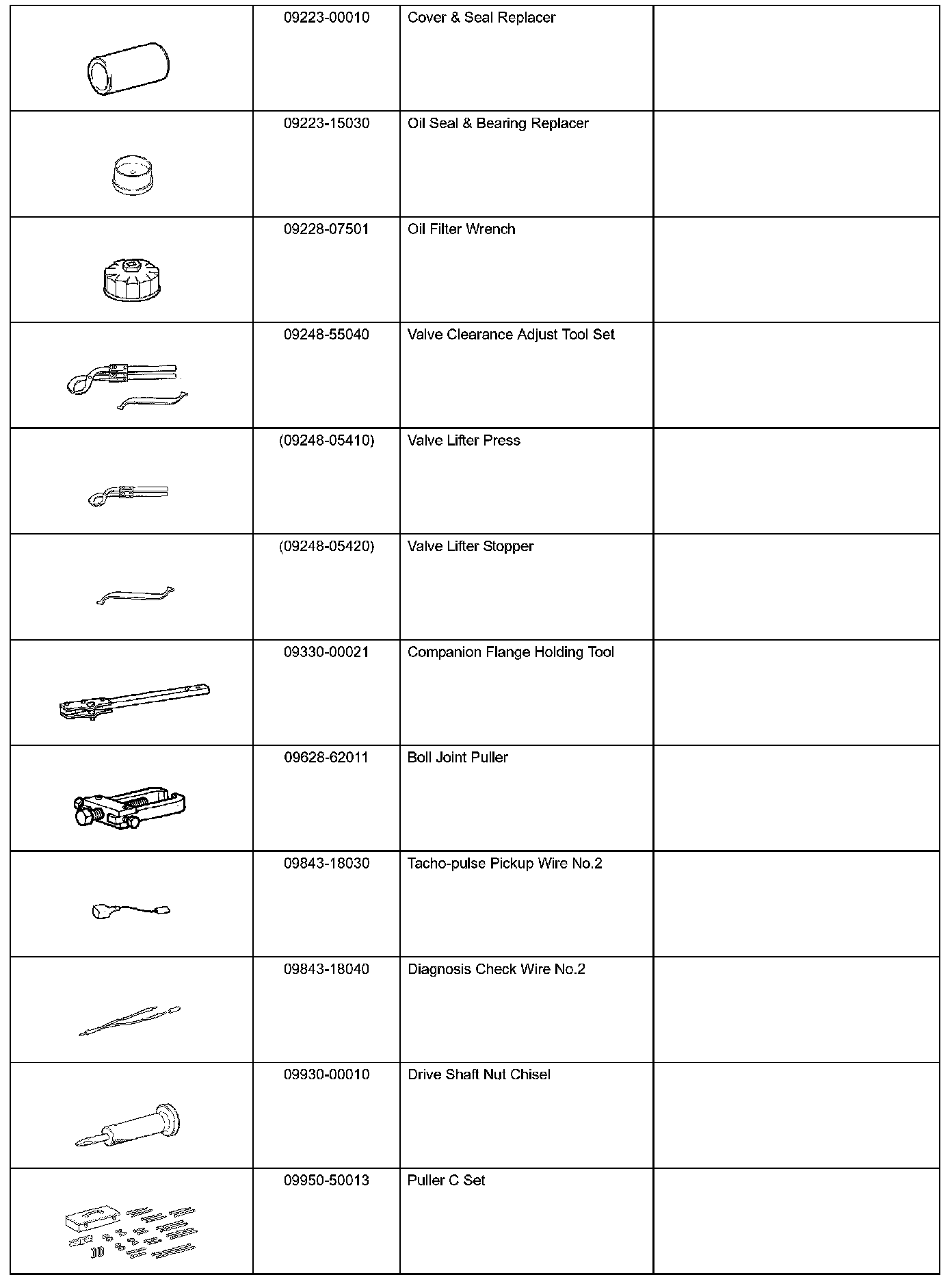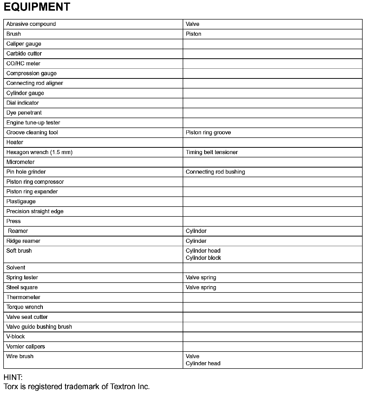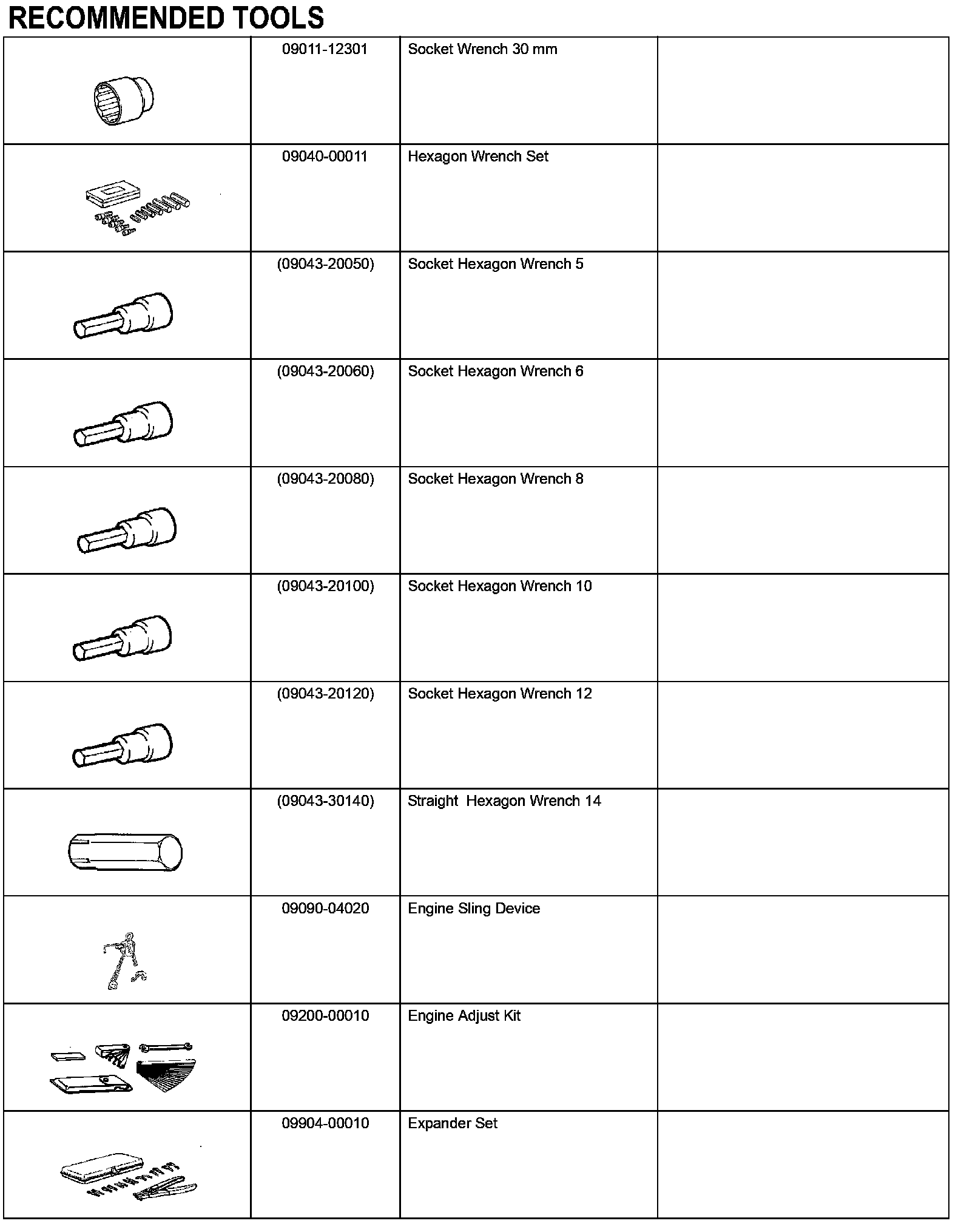 Engine Mechanical - Recommended Tools Part 1: