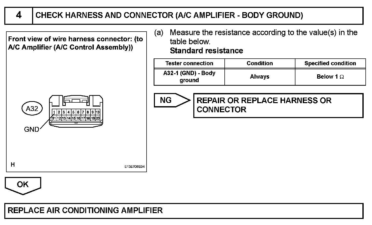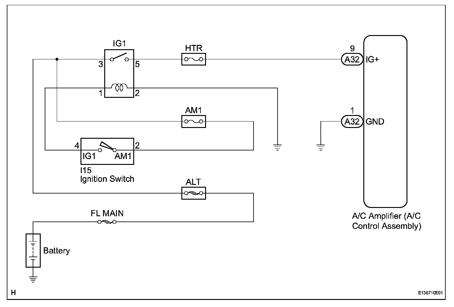 This is the main power source supplied to the A/C amplifier when the ignition switch is turned to the ON position. The power source supplied is used for operating the A/C amplifier and servomotor, etc.