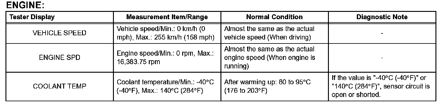 DATA LISTa. According to the DATA LIST displayed on the intelligent tester, you can read the values of the switches, sensors, actuators and so on without parts removal. Reading the DATA LIST as the first step in troubleshooting is one method to shorten work time.