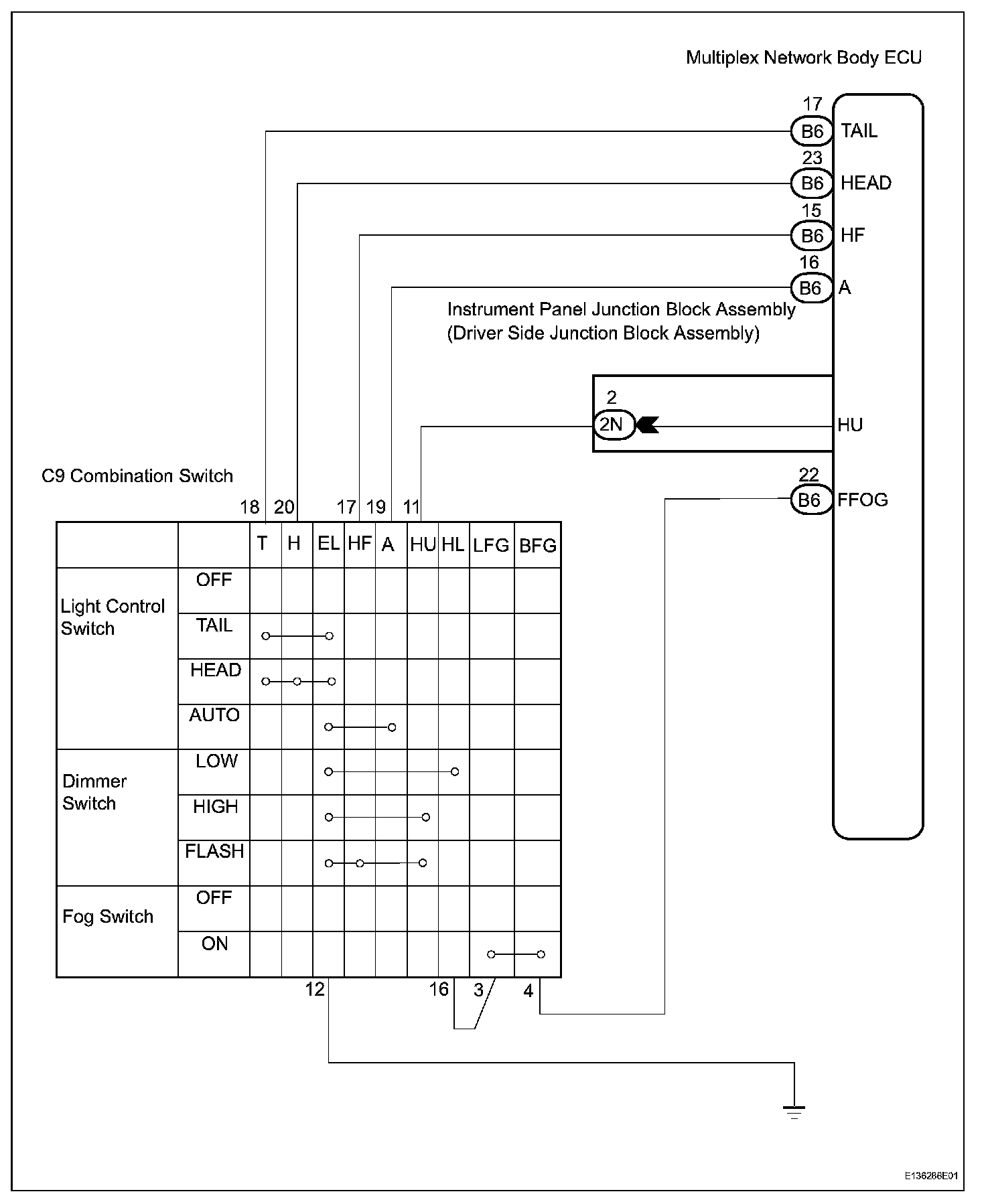 This circuit detects the state of the headlight dimmer switch.