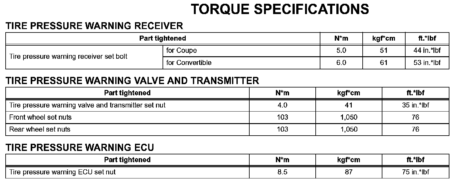 Tire And Wheel - Torque Specifications:
