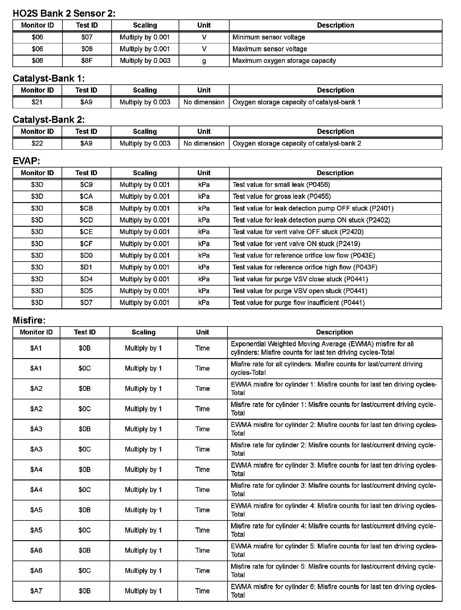 If you use a generic scan tool, multiply the test value by the scaling value listed.