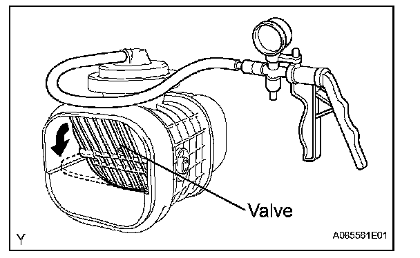 a. Apply 26.7 kPa (200 mmHg, 7.9 in.Hg) of vacuum to the actuator. Check if the valve rotates open, as shown in the illustration.