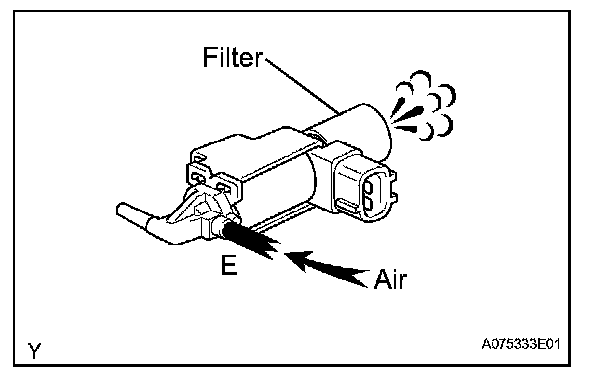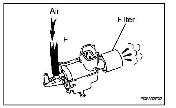 1. Check that air flows from port E to the filter.