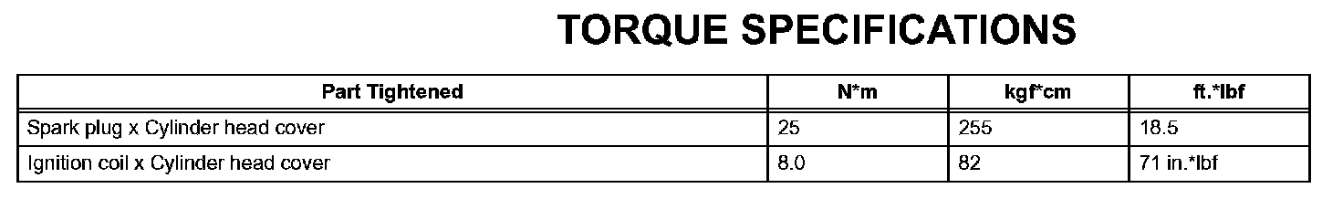 Ignition - Torque Specifications: