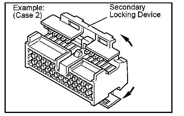 b. Use a special tool or the terminal pick to unlock the secondary locking device or terminal retainer.