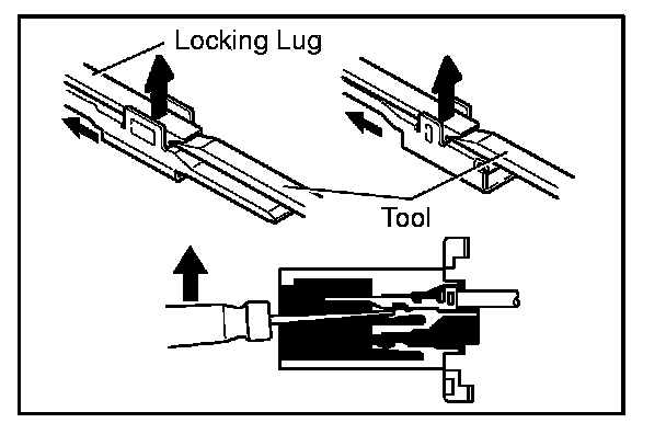 a. Locking device must be disengaged before the terminal locking clip can be released and the terminal removed from the connector.
