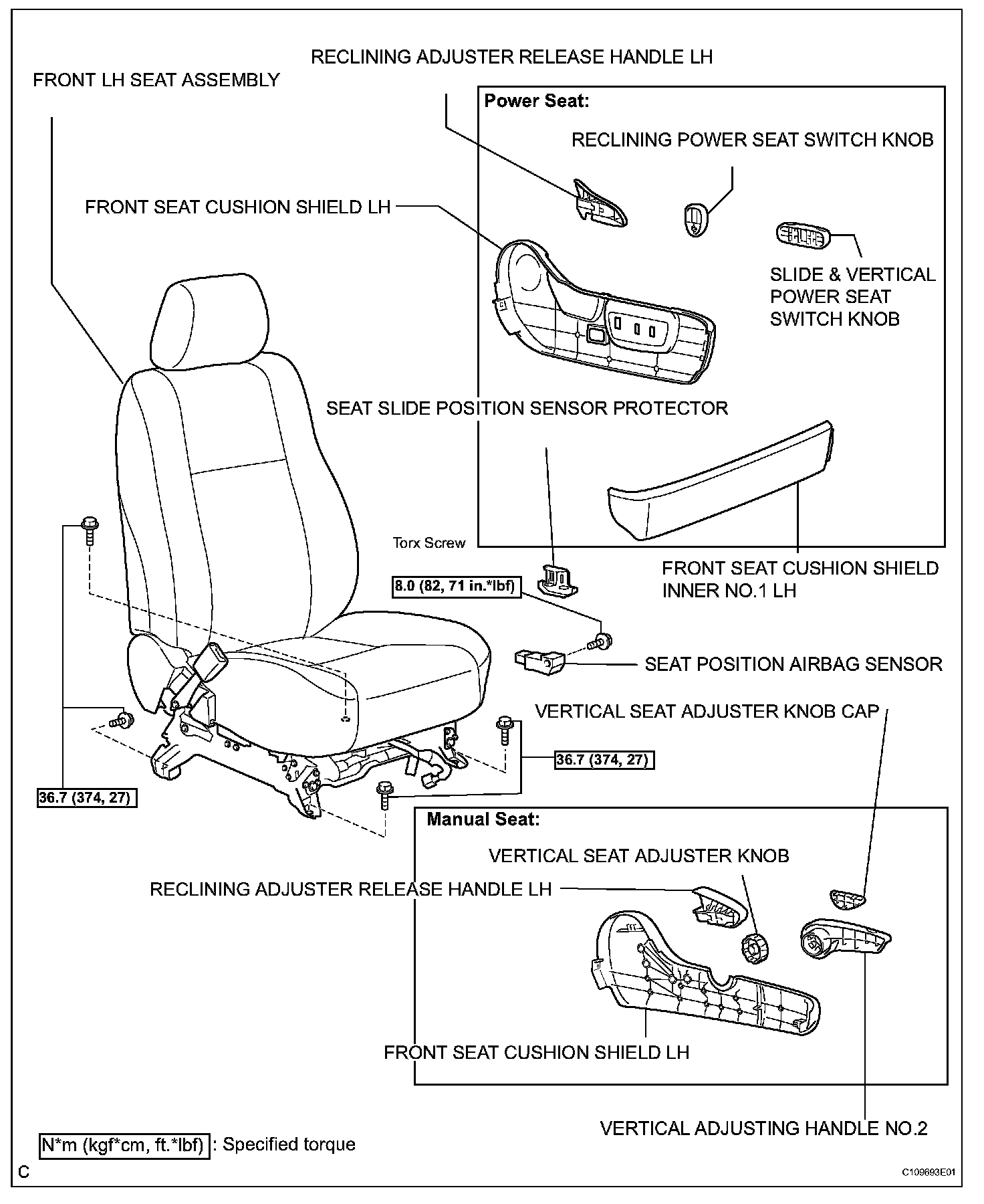 2. REMOVE FRONT LH SEAT ASSEMBLY Power Seat, Manual Seat