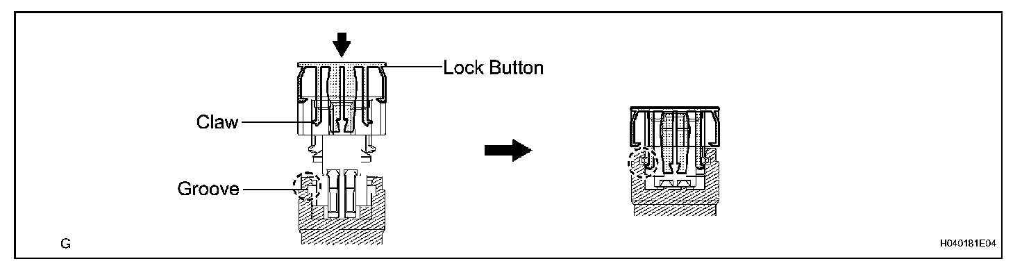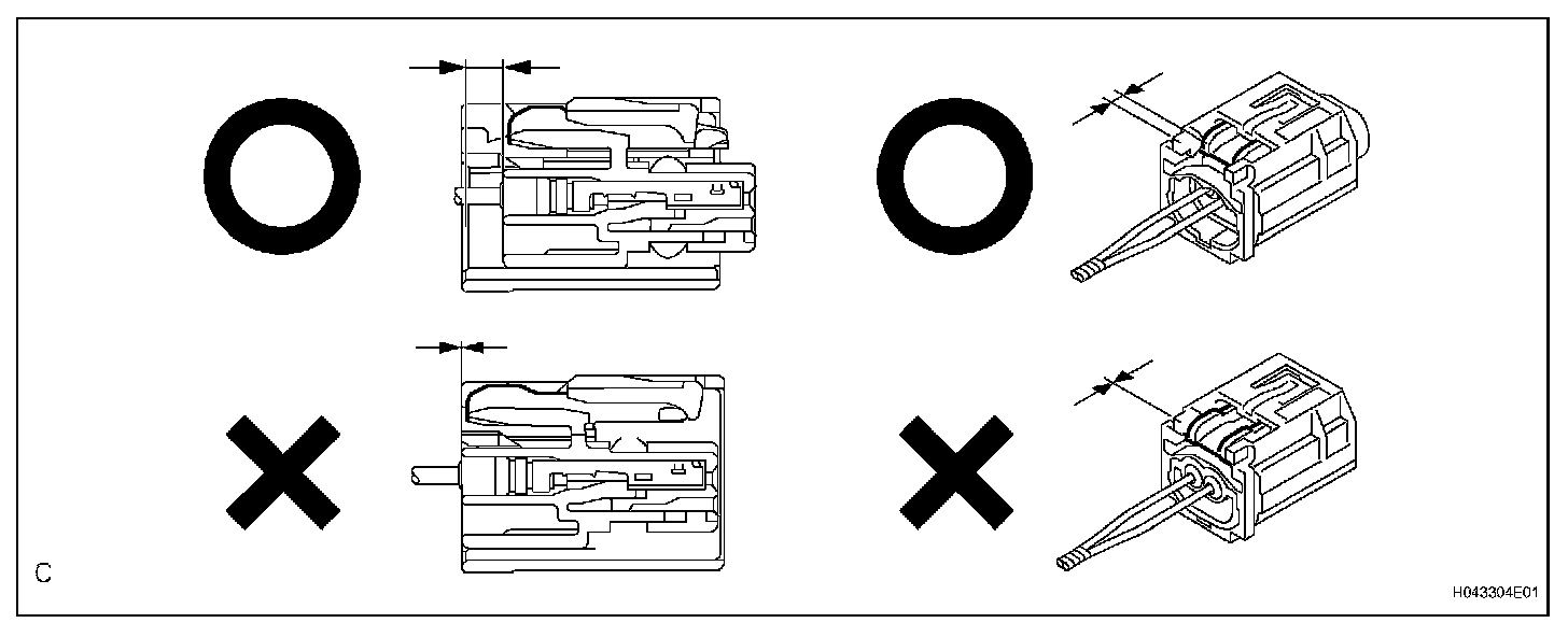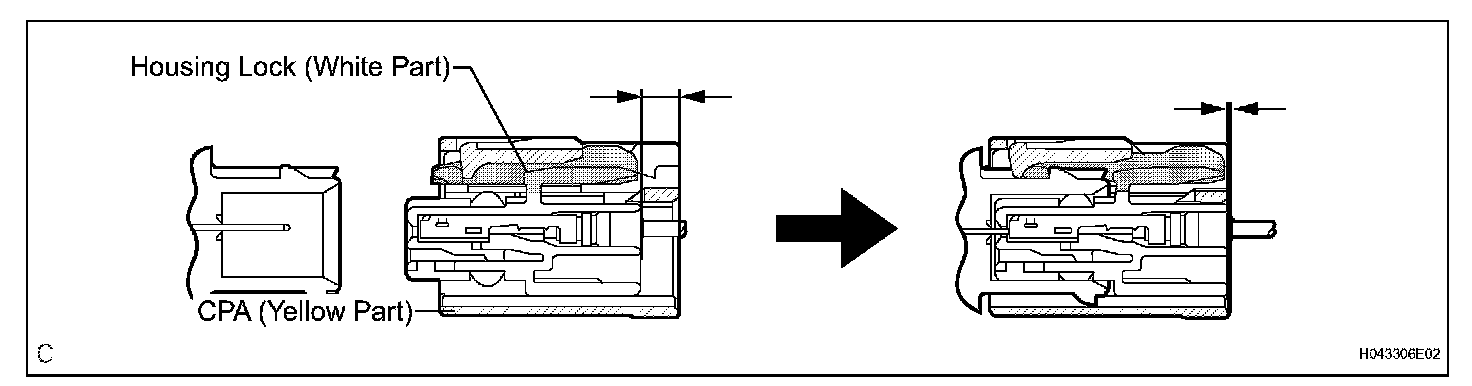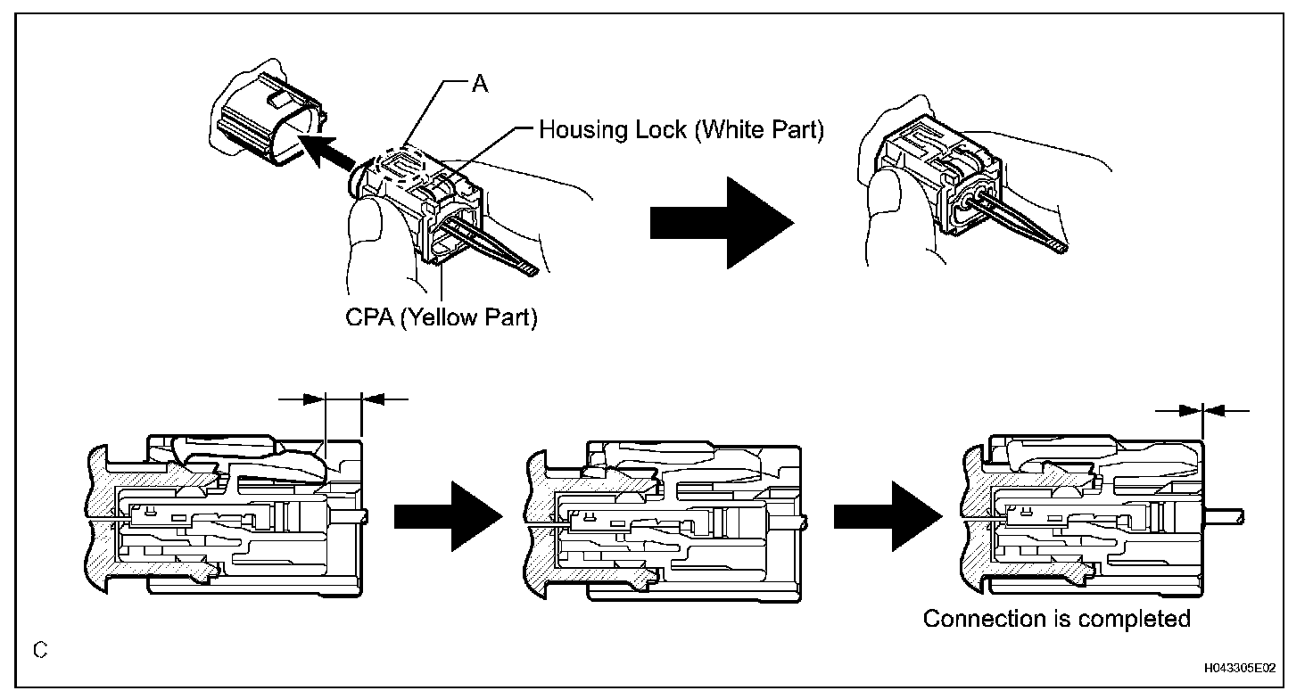 c. After disconnecting the connector, check that the position of the housing lock (white part) is as shown in the illustration.