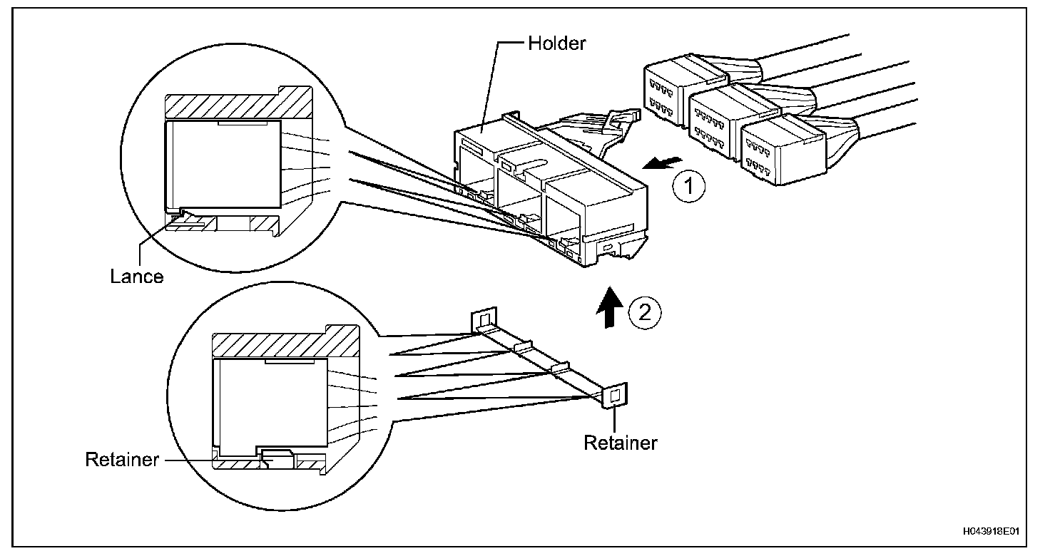 Both the primary lock with holder lances and the secondary lock with retainer prevent the connectors from becoming disconnected.