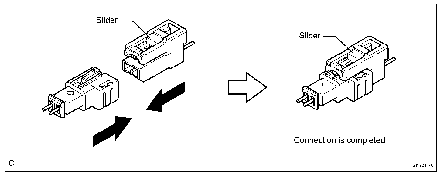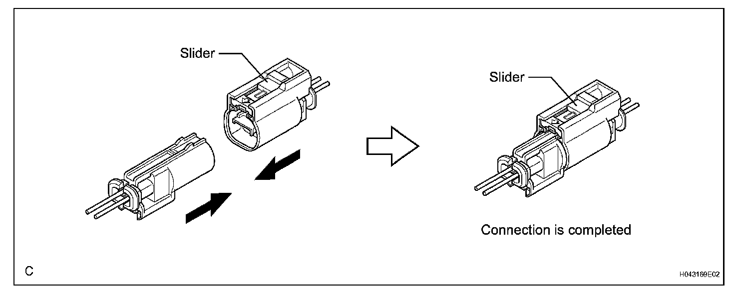 a. Connect the connector as shown in the illustration. (When locking, make sure that the slider returns to its original position and a click sound can be heard.)