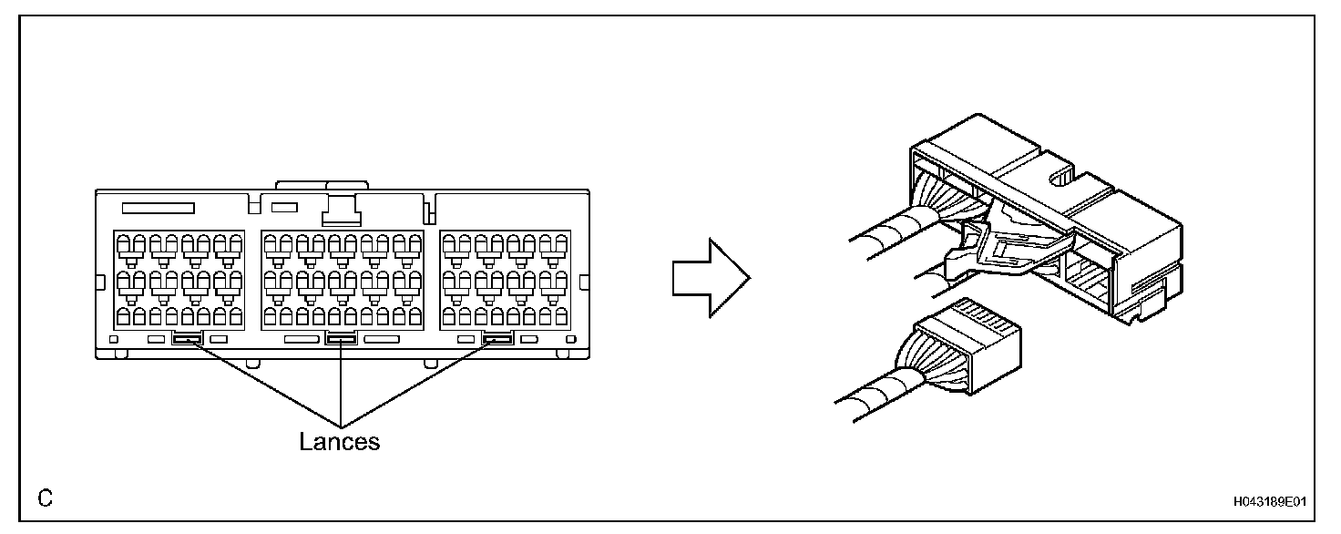 HINT: Do not push down the A part shown in the illustration when disconnecting.