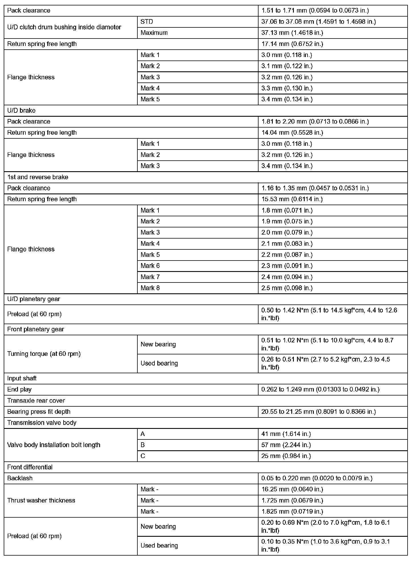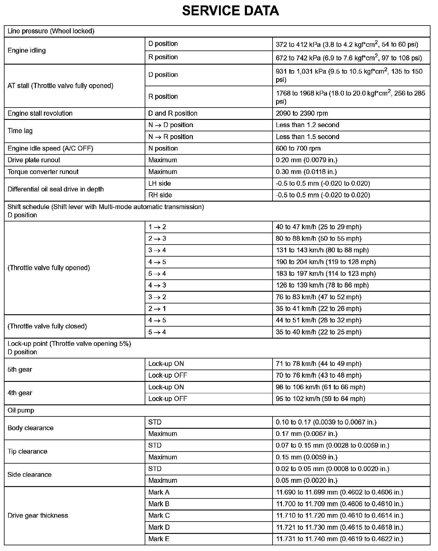 Automatic Transaxle - Service Data (Part 2):