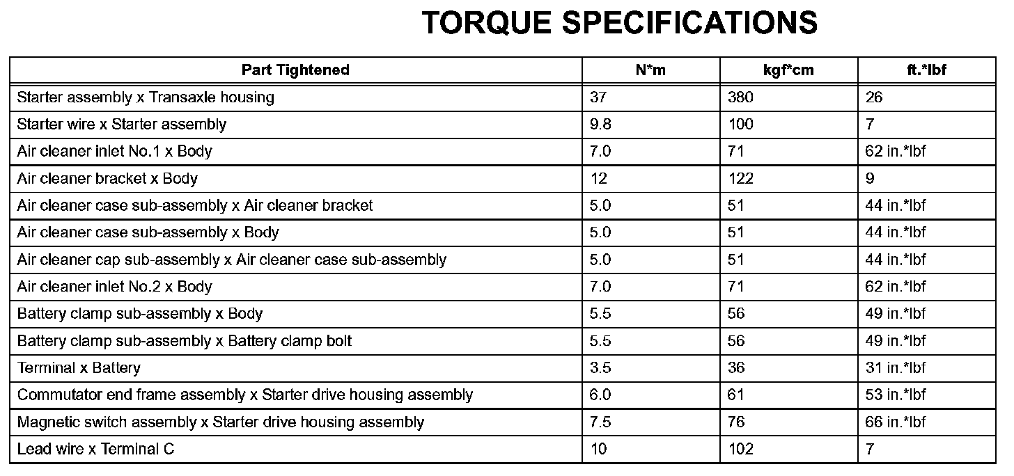 Starting - Torque Specifications: