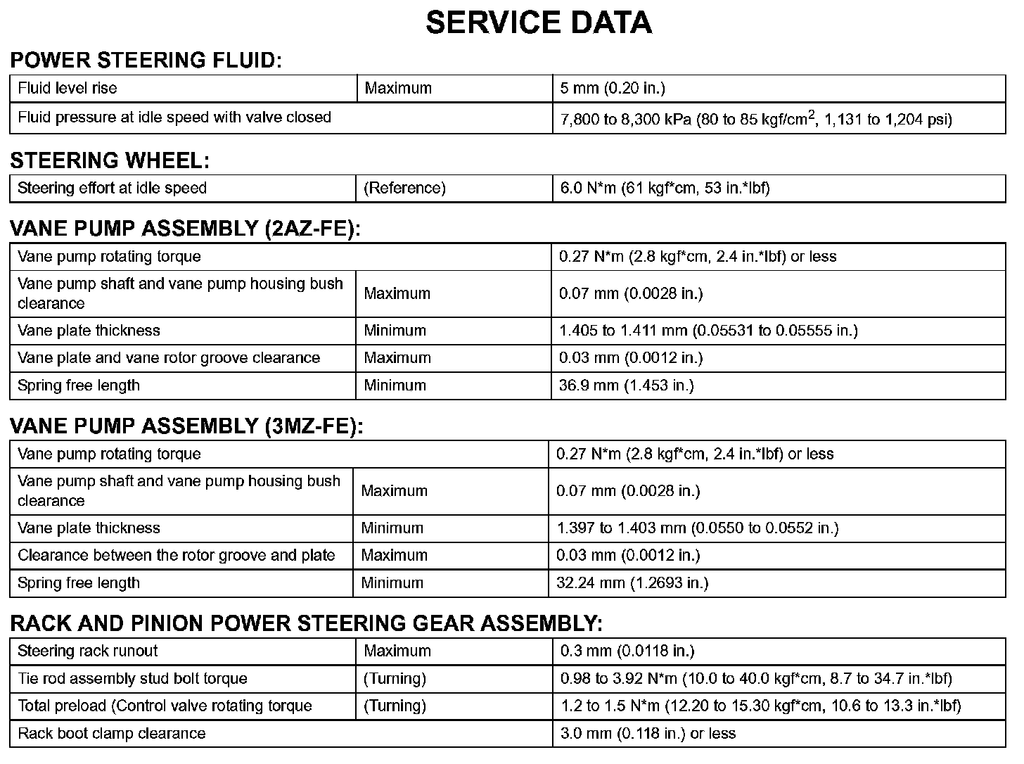 Power Steering - Service Data: