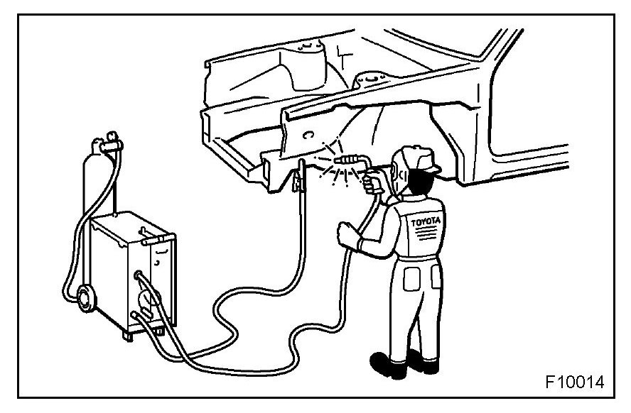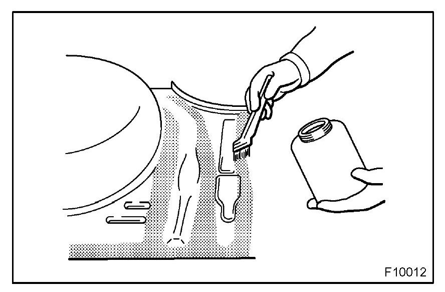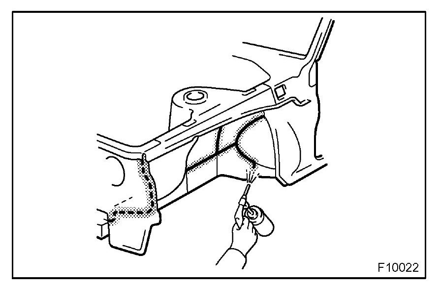 1. To prevent corrosion and protect the body from damage by flying stones, etc., apply anti-chipping paint to the rocker panel, wheel arch areas, balance panel, etc.