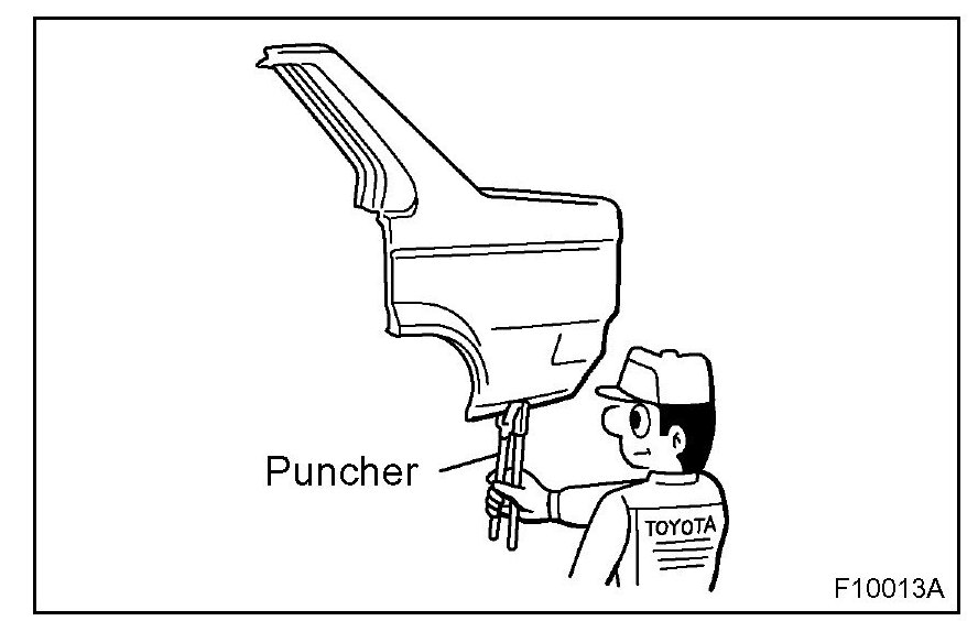1. For areas where a spot welder cannot be used, use a puncher or drill to make holes for plug welding.