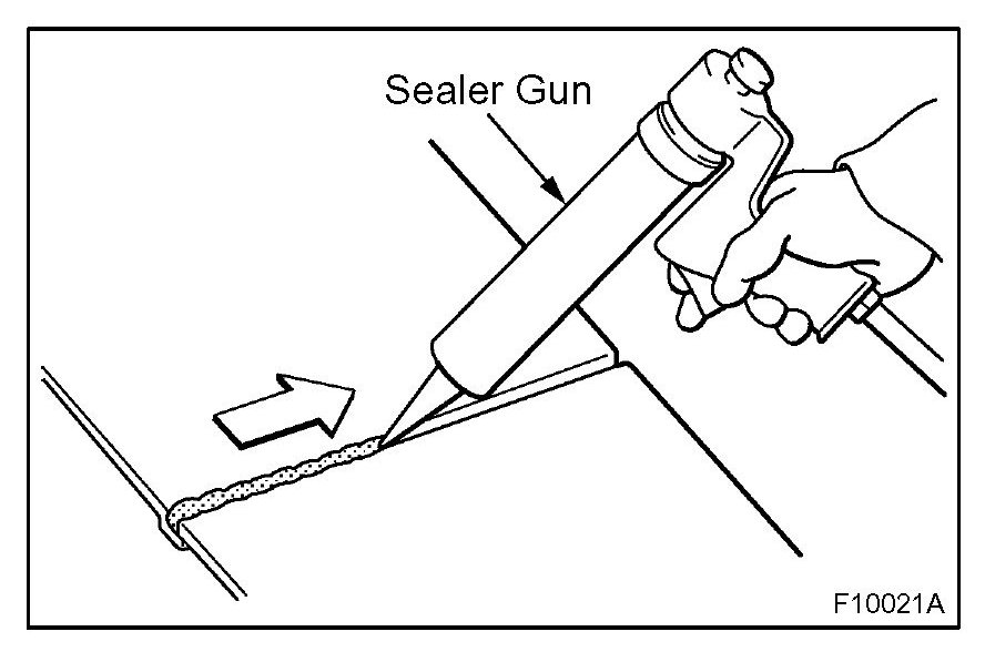 1. For water-proofing and anti-corrosion measures, always apply the body sealer to the body panel seams and hems of the doors, hoods, etc.