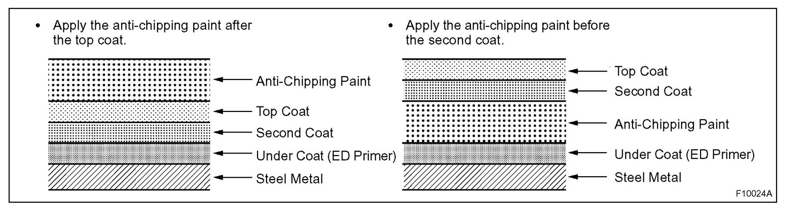 HINT: Depending on the model or the application area, there are cases where the application of anti-chipping paint is necessary before the second coat or after the top coat.