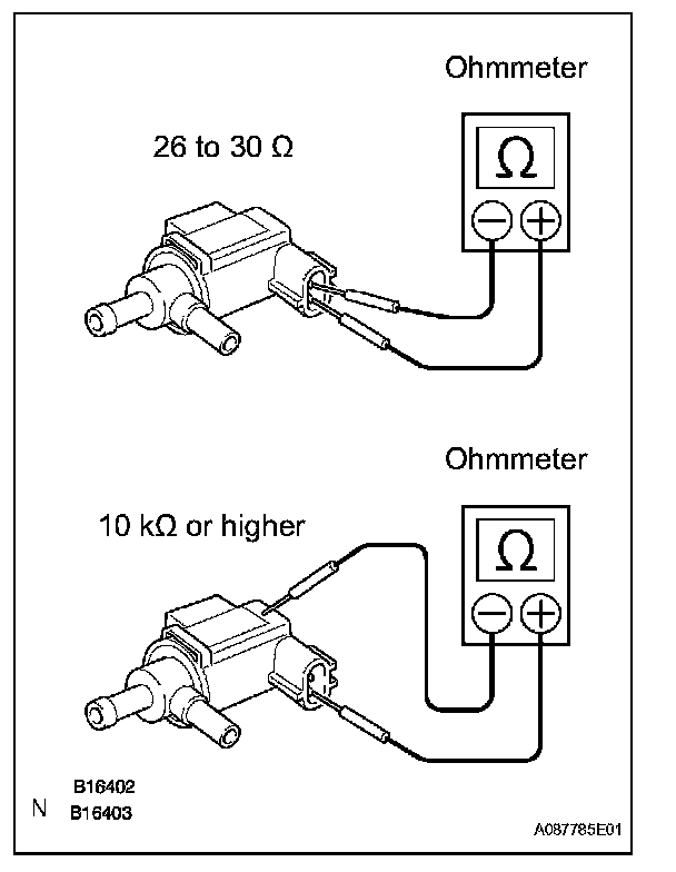 1. Check the VSV for open circuit. If the resistance is not as specified, replace the VSV assembly.