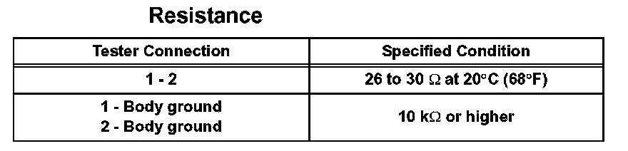 a. Measure the resistance between terminals 1 (HT) and 2 (+B). If the result is not as specified, replace the sensor.