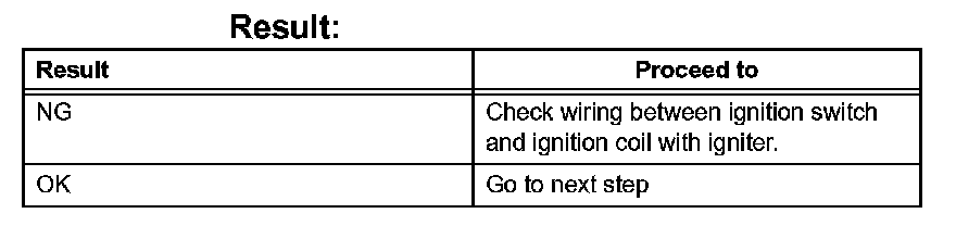 1. Check that the wire harness side connector of the ignition coil with igniter is securely connected.Result: