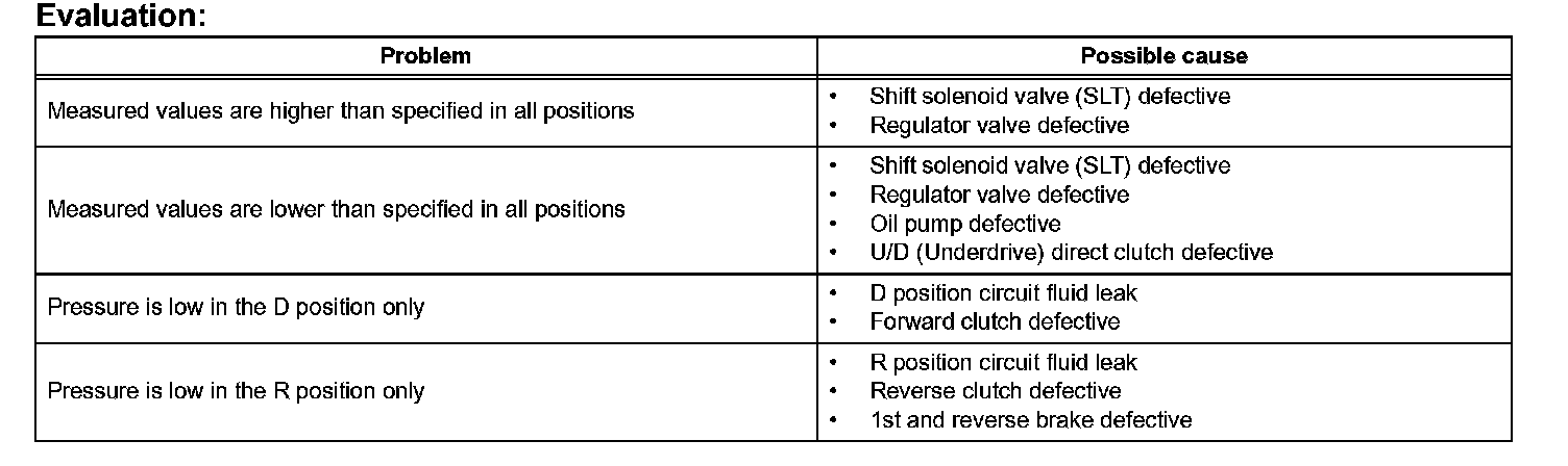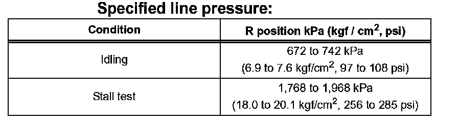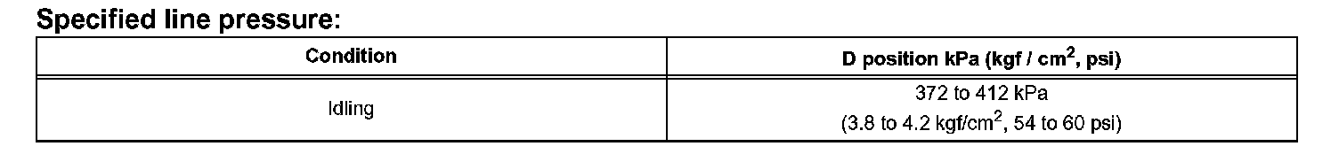 ^ Perform the test at the normal operating ATF (Automatic Transmission Fluid) temperature: 50 to 80°C (122 to 176°F).